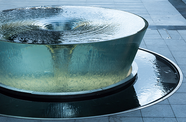 水本無形,它的物理特性讓它能輕易地跟隨容器而呈現不同的面貌。獨特的延展性使得水能呈現無以計數的不同效果。燈光的布置,介質的紋理,顏色和動態都能給水帶來無窮的變化